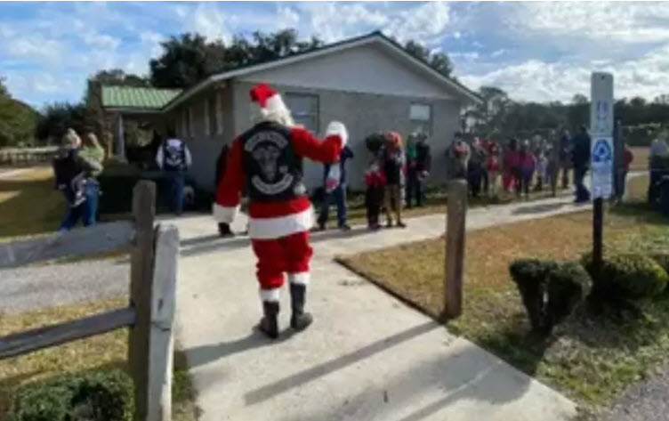 The Walking Dead Crew (WDC), a local chapter of the Iron Order Motorcycle Club, recently took a trip to the Wagon Branch Community Center where Santa arrived on his bike and greeted a group of children and their families.